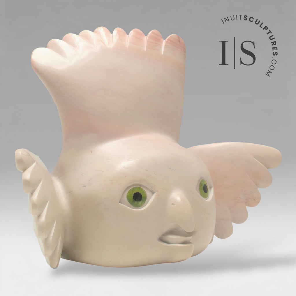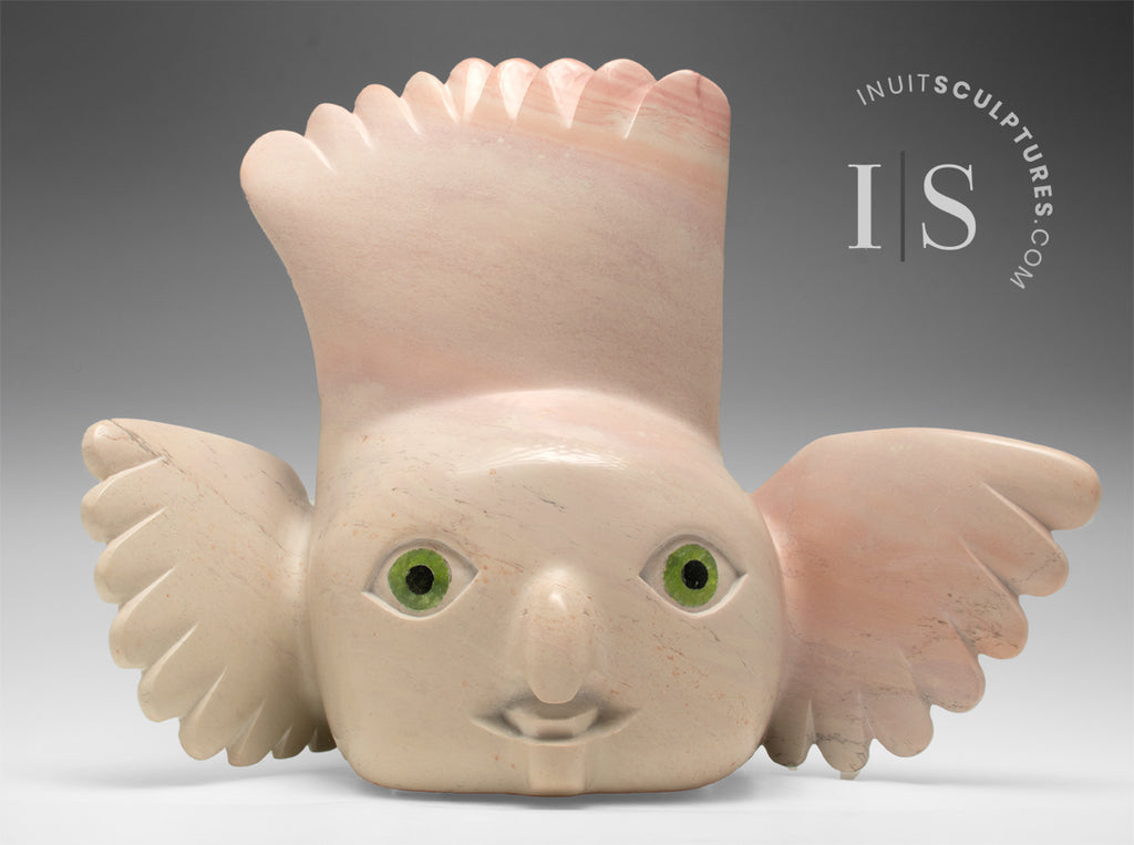 PEONY'S radiant green eyes compete for "Most Spectacular Eyes in an Inuit Carving".
