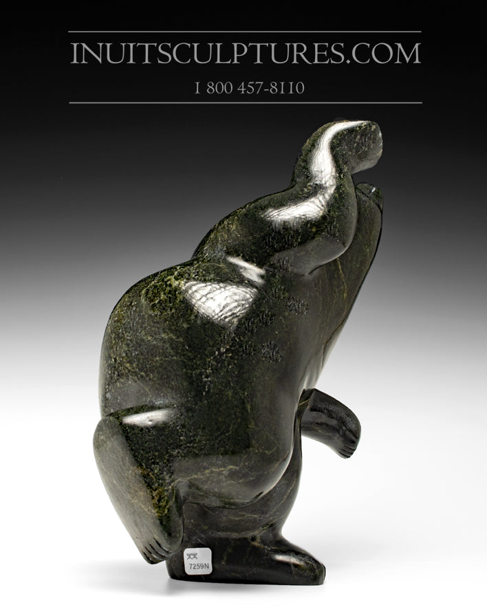 This is a beautiful composition of a dancing bear by world renowned artist Palaya Qiatsuq. He is extremely famous for his dancing owls.