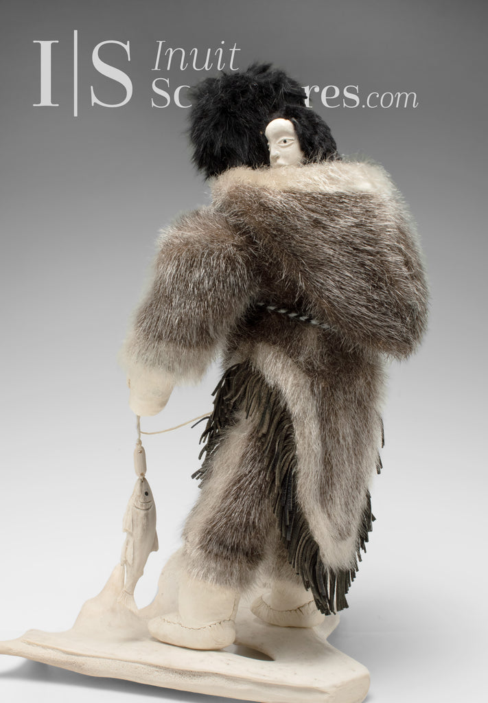 When I first saw this Inuk hunter wearing the most incredible seal skin parka, pants and mukluks, I was moved by the dedication and talent these two Inuit artists have to create such a beautifully accurate soft sculpture.