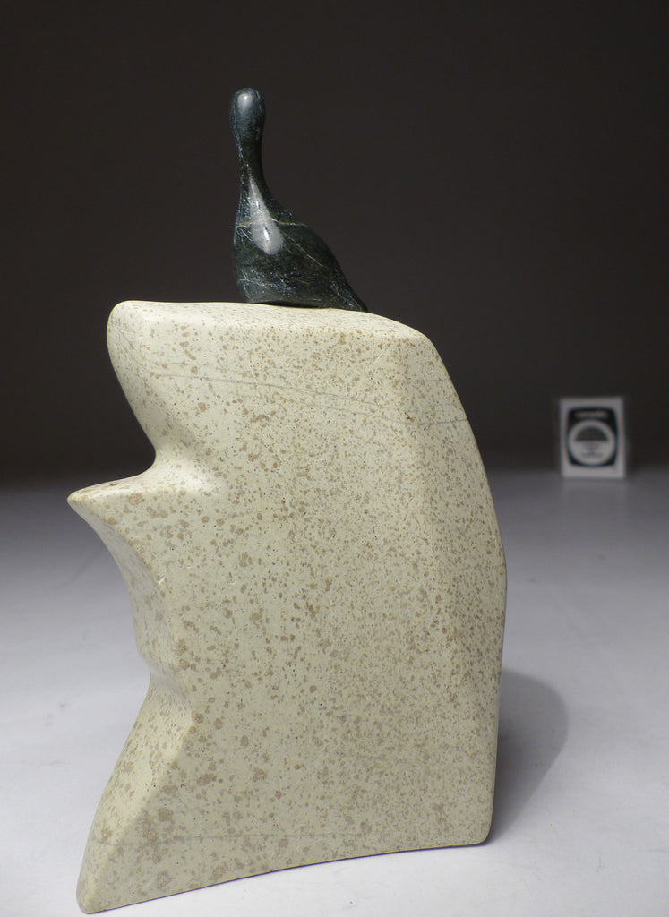 A great composition bird on cliff by the world acclaimed artist Mark Pitseolak from Kimmirut. All of his carvings are extremely gorgeous.